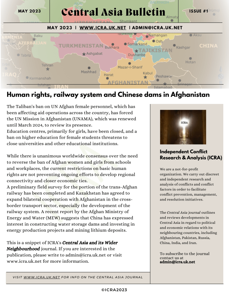 This is a snippet of ICRA’s Central Asia and its Wider Neighbourhood journal. If you are interested in the publication, please write to erathgeber@icra.uk.net.